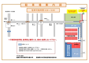 ※駐車場台数に限りがありますので、徒歩や自転車、公共交通機関の利用にご協力をお願いします。