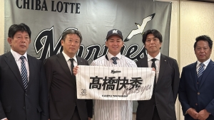 本日11月21日(金)、徳島市内のホテルにて2025NPBドラフト会議において千葉ロッテマリーンズより育成2位指名を受けた高橋快秀投手が入団交渉に臨み、契約を結びました。